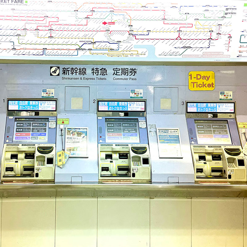 新幹線チケットの券売機は、改札の近くにあります。写真と同じ券売機を使います。