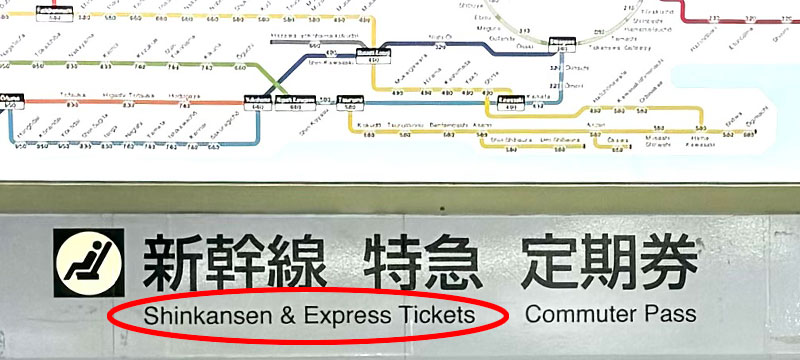 下記のように書かれた券売機を使ってください。"Shinkansen & Express Tickets.