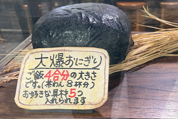 日本最高峰のブランド米「南魚沼産コシヒカリ」を1合まるごと使った巨大おにぎり!注文を受けてからその場で握ってくれるので、ホカホカの美味しさを堪能できます。その大きさは圧巻の一言。