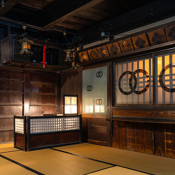 元禄創業の歴史を持ち、芸と教養を備えた太夫文化を今に伝えます。現在も営業する一見さんお断りの特別な空間をこのたび貸切り、「かしの式」をご覧いただきます。現存の揚屋建築内部を案内人が解説します。